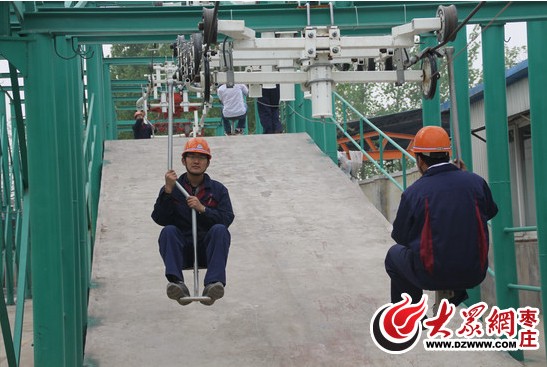 工作人員向記者演示“猴車(chē)”乘坐方式。