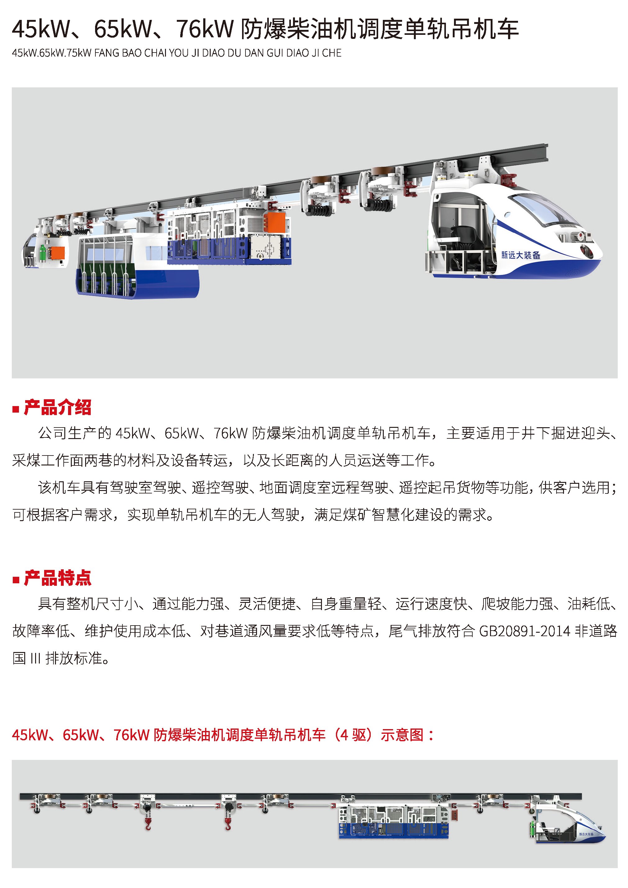 防爆柴油機(jī)單軌吊機(jī)車(chē)